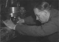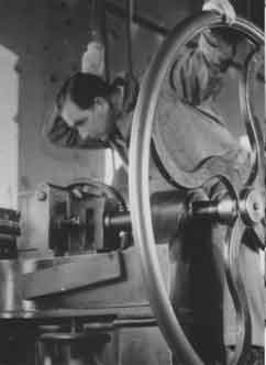 In der Guntramsdorfer Walzengravieranstalt haben bis zu 25 Personen gearbeitet. Ihre Aufgabe war es, bis zu 3 Meter lange Druck- oder Prägewalzen anzufertigen, die vom Kunden vorgegebene Muster tragen sollten. Die Herstellung einer derartigen Druck- oder Prägewalze dauerte je nach Dimension der Walze und Aufwändigkeit des Musters zwischen zwei und sechs Wochen. Die Angestellten der Walzengravieranstalt waren hochspezialisierte Fachkräfte. Der Arbeitsalltag war geprägt durch das Nebeneinander auf engstem Raum von sehr verschiedenartigen Tätigkeiten. Zum einen die feine und kunstvolle Handarbeit der Graveure, zum anderen die Bedienung schwerer Maschinen durch die Releveure und die Moleteure. Beides erforderte höchste Präzision. Zunächst wurde das vom Kunden vorgegebene Muster auf Transparentpapier „abgehoben“, d.h. die Konturen mit in Ätzfarbe getauchtem Pinsel nachgezeichnet, und durch Ätzen auf einen in Umfang und Breite an die Größe des Musters angepassten verkupferten Stahl-Zylinder, die sog. Molette, übertragen. Das auf der Molette abgebildete Muster wurde danach mit einem Stichel eingeritzt und die gestochene Kontur In einem weiteren Ätzvorgang vertieft. Dann begann die eigentliche Gravierarbeit. Dabei wurde ausgehend von der geätzten Kontur das vollständige Muster in feinster Handarbeit unter der Lupe in den Stahl der Molette mit dem Stichel graviert, was bei komplizierten Mustern bis zu 3 Wochen dauern konnte. Die gravierte Molette wurde anschließend gehärtet und diente im nachfolgenden Releviervorgang als „Matrize“. Dabei wurde das Muster der Molette mit der Releviermaschine durch Pressen und Ätzen auf eine weitere Molette abgedrückt, es entstand ein negatives Abbild des Musters, die sog. „Patrize“, welche ebenfalls gehärtet werden musste. Schließlich wurde die Patrize durch Pressen und Ätzen auf das Endprodukt, die Druck- bzw. Prägewalze, abgedrückt. Dies geschah auf der Molettiermaschine, wobei das Muster der Molette sich sowohl in Umfangsrichtung als auch in der Breite wiederholend aufgetragen wurde, was voraussetzte, dass der Umfang der Molette und der Druckwalze präzise aufeinander abgestimmt waren. |